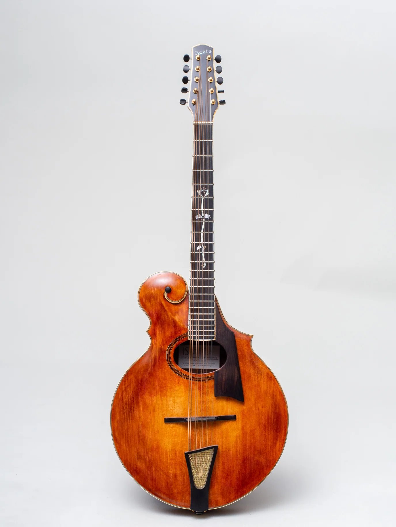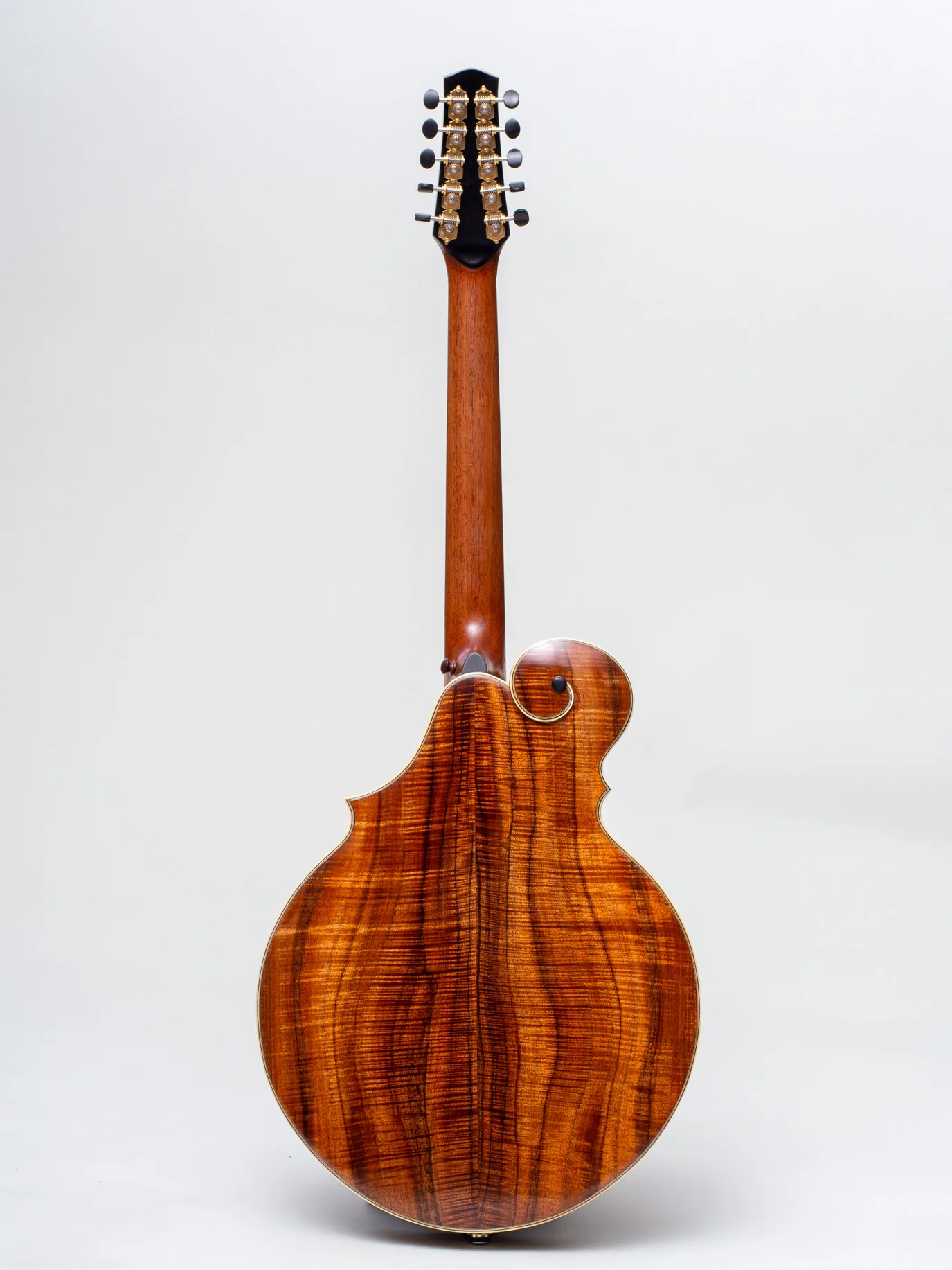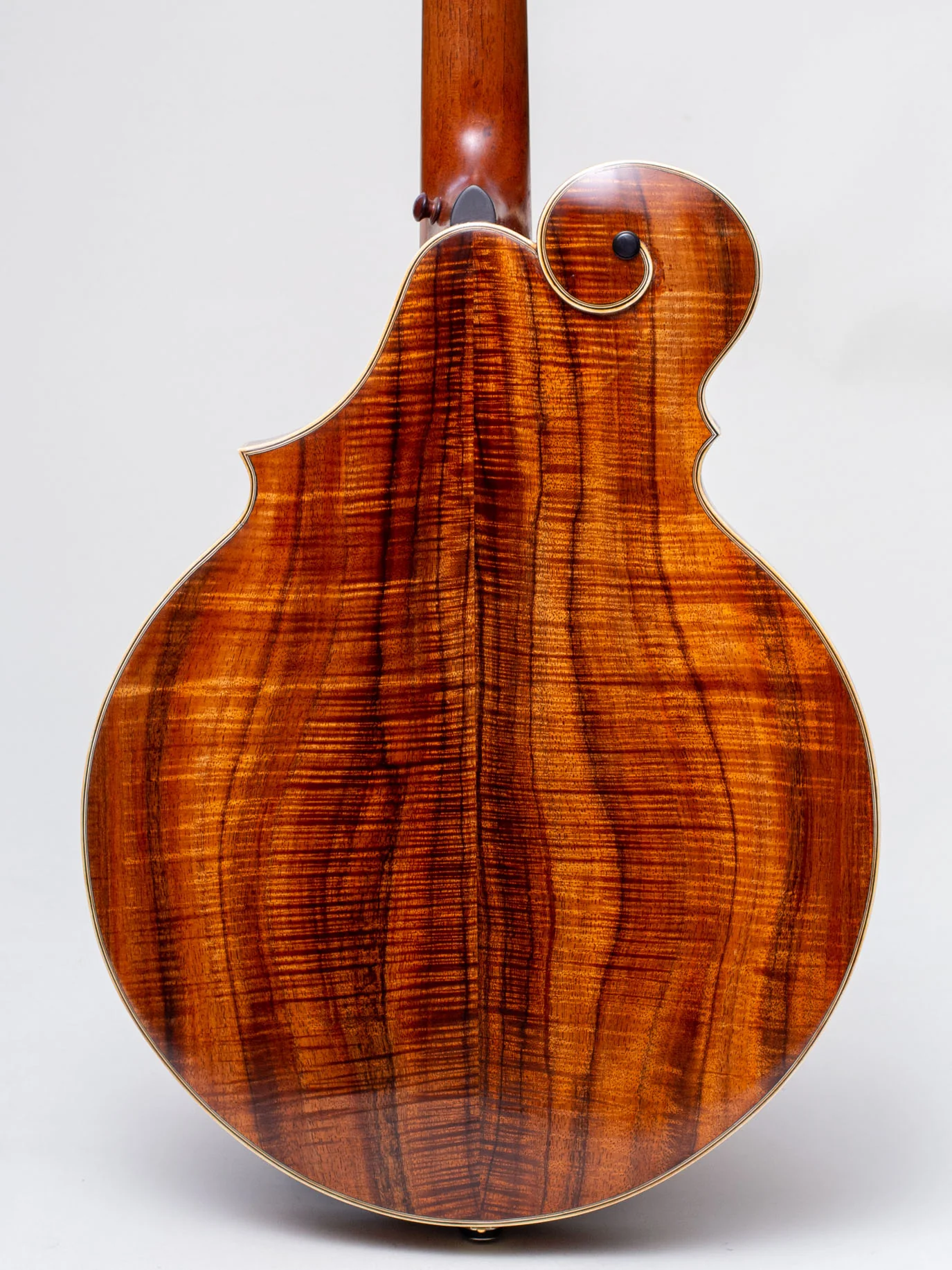 This 2017 ISI 5-course Florentine octave mandolin is a standout example of ISI craftsmanship. Built with a spruce top and koa back and sides, it features ivoroid binding, Waverly tuning machines, and a 25” scale length with a 1 11/16” nut width. The instrument has an expressive voice, with deep, resonant basses and clear, responsive highs—especially well-suited to picking.