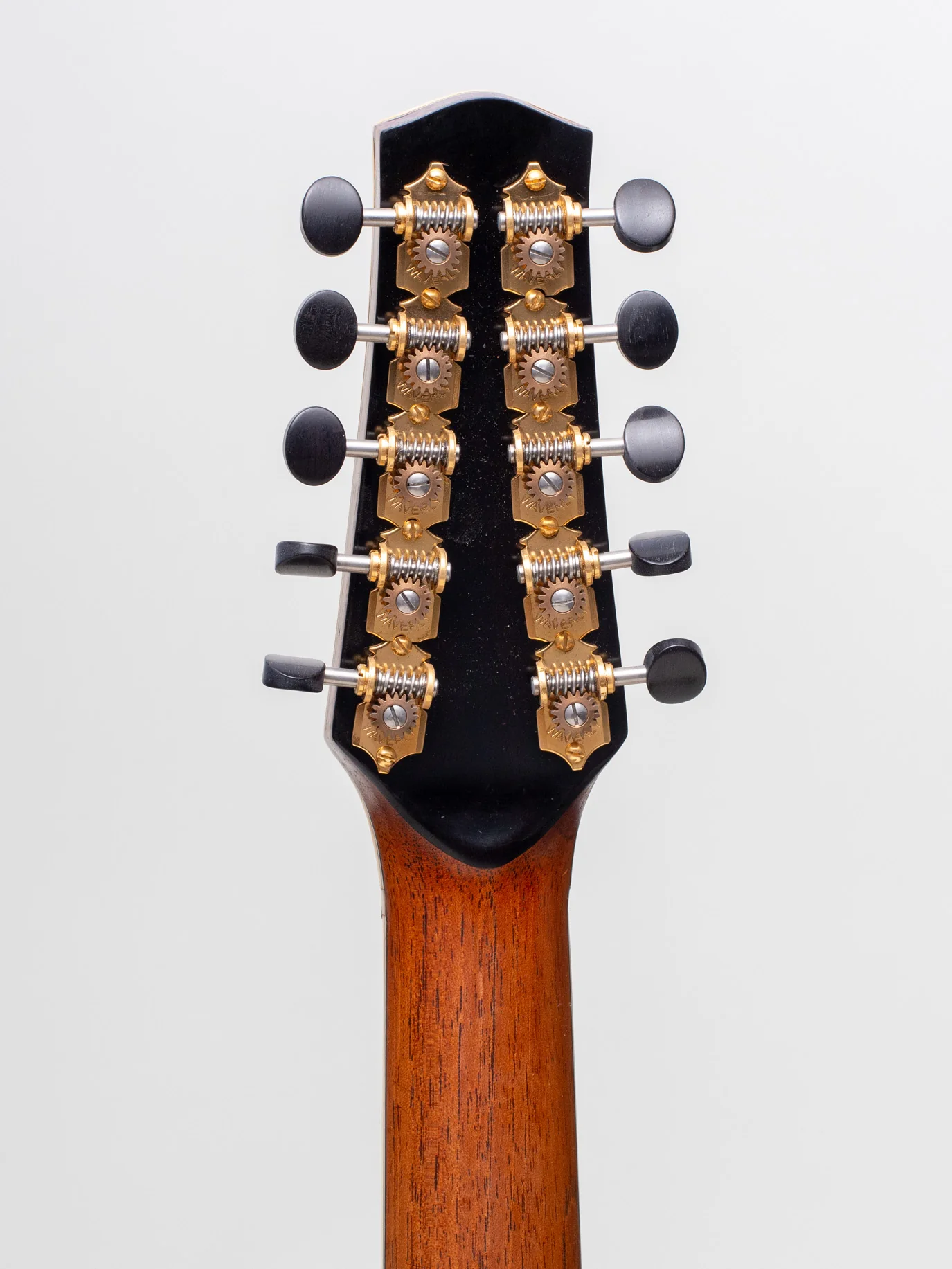 Built for Jim Walsh, this A-style Mandocello features Sitka spruce paired with red maple for a striking look and exceptional sound. It delivers a clear, open tone with powerful low-end punch and impressive sustain. With its clean, understated appointments, it has a timeless, classic aesthetic.